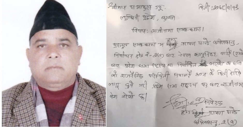 काठमाण्डु – नेकपा एमाले लुम्बिनी प्रदेश सदस्य दुगनारायण पाण्डेयको राजीनामा स्वीकृत भएको छ । आइतबार सांसद पाण्डेयले दिएको राजीनामा सोमबार सभामुख पूर्ण घर्तीले स्वीकृत गरेका हुन् ।