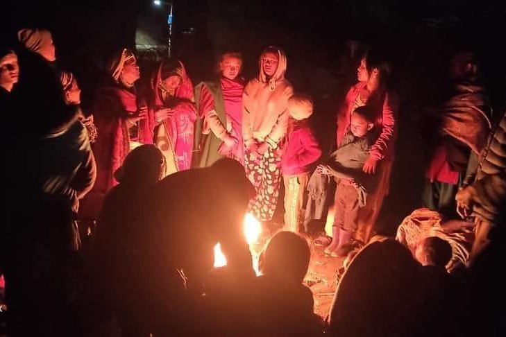 भूकम्प आउँदैछ भन्ने हल्ला चलेपछि कठ्यांग्रिदो चिसोमा मानिसहरू बाहिर बसेका तस्विर सामाजिक सञ्जालमा समेत छ्याप्छ्याप्ती भए।