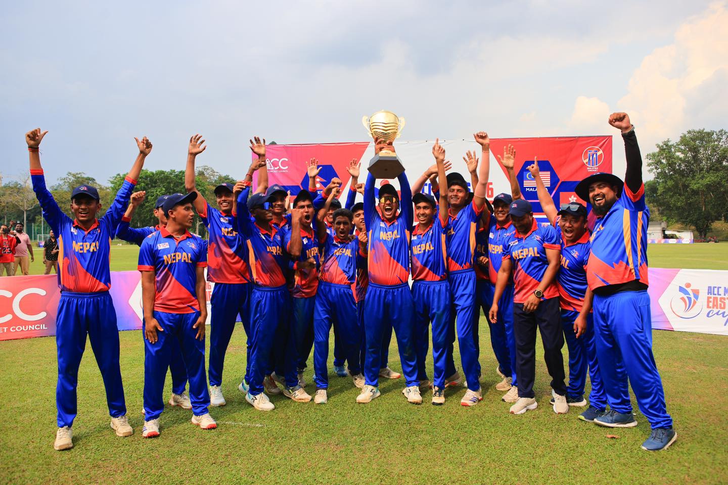 काठमाण्डु – एसीसी यू–१६ इस्ट जोन कपको व्यक्तिगत विधातर्फको सम्पूर्ण पुरस्कार विजेता टोली नेपालका खेलाडीले जितेका छन्। मलेसियाको युकेएम वाइएसटी ओभलमा आज भएको फाइनल खेलमा सिङ्गापुरलाई २ विकेटले हराउँदै साविक विजेता नेपालले उपाधि उचालेको हो।