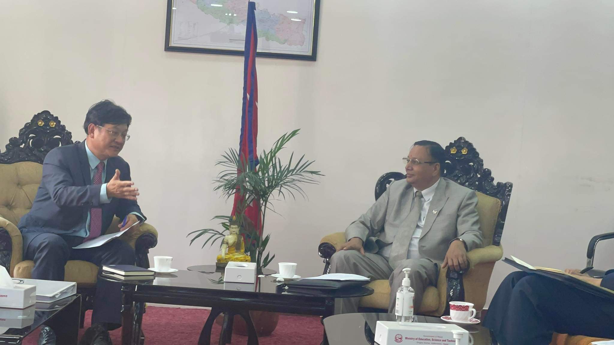 शिक्षा मन्त्री पौडेल र एडिबीका उपाध्यक्षबीच भेटवार्ता, शिक्षा क्षेत्रमा सहयोग गर्ने चैनको प्रतिबद्धता