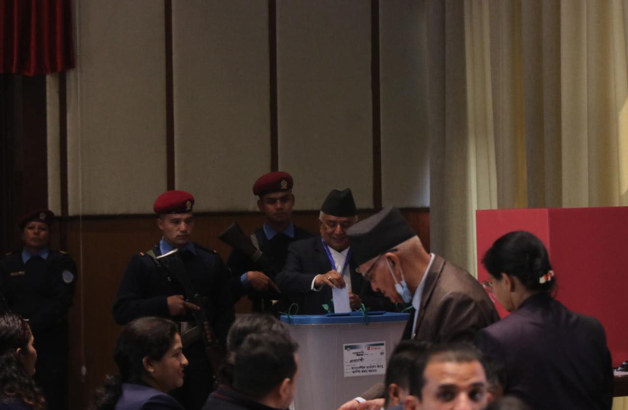 नेपाली कांग्रेसका उम्मेदवार रामचन्द्र पौडेल र नेकपा एमालेका उम्मेदवार सुवासचन्द्र नेम्वाङ बिचको प्रतिस्पर्धामा राजनीतिक दलका शिर्ष नेताहरुले मतदान गरेका हुन् ।