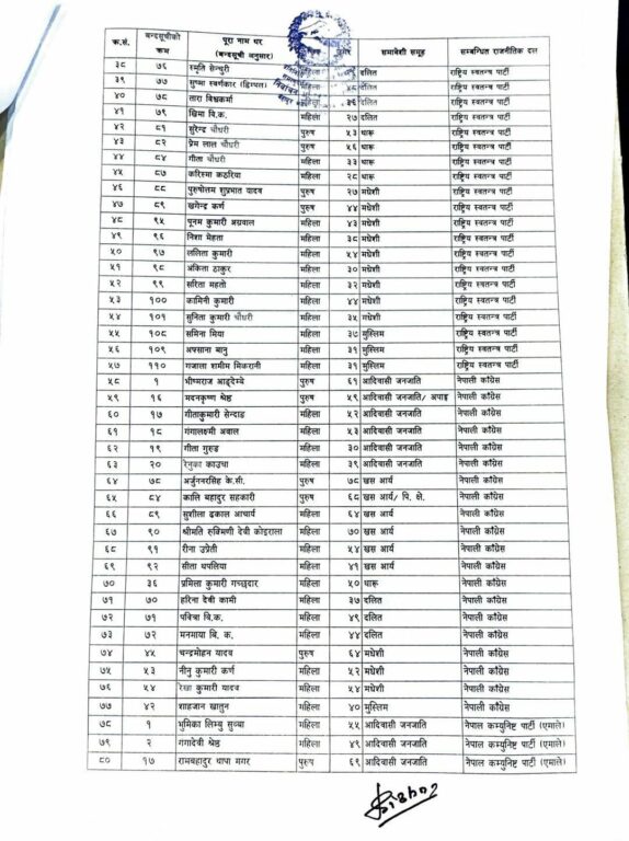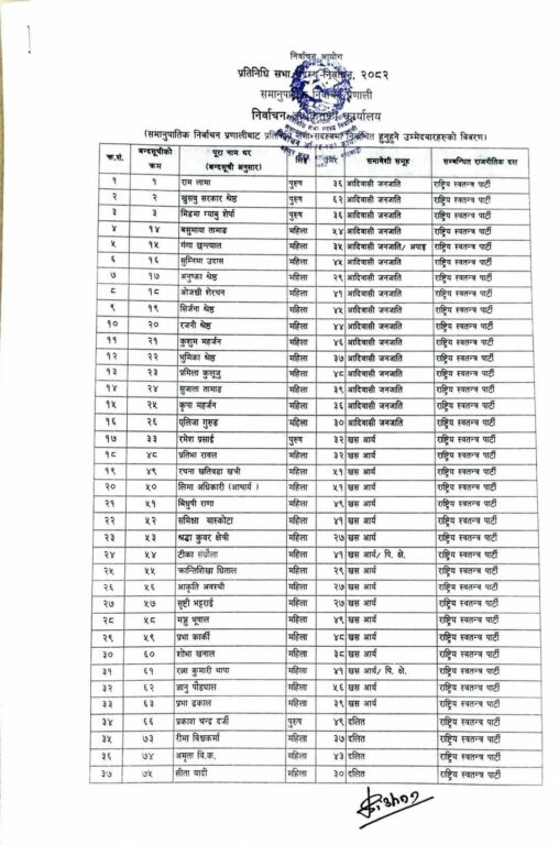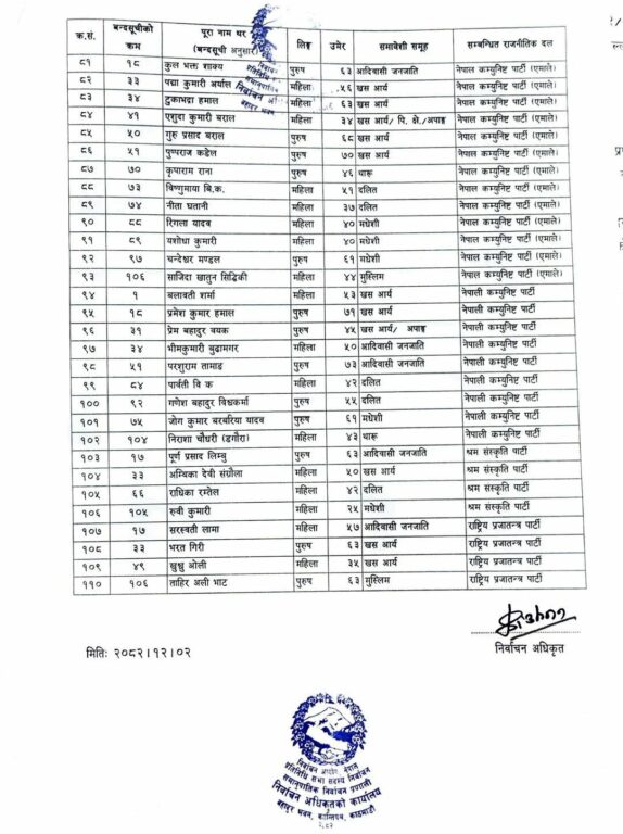 काठमाण्डु – निर्वाचन आयोगले प्रतिनिधिसभा निर्वाचनमा समानुपातिकतर्फ निर्वाचित ११० जनाको नाम सार्वजनिक गरेको छ ।