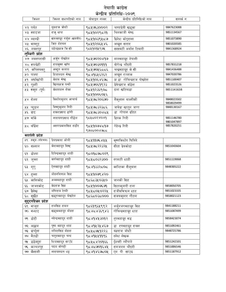 यसैक्रममा नेपाली कांग्रेसले ४ मंसिरमा हुने प्रदेश तथा प्रतिनिधिसभा निर्वाचनलाई लक्षित गरी जिल्ला–जिल्लामा केन्द्रीय प्रतिनिधि खटाएको छ । चुनावी अभियानका लागि कांग्रेसले ७७ वटै जिल्लामा १० भदौदेखि ‘जनताको साथमा कांग्रेस’ अभियान सञ्चालन गर्दैछ । सोही अभियानका लागि उसले केन्द्रीय प्रतिनिधि खटाएको हो ।