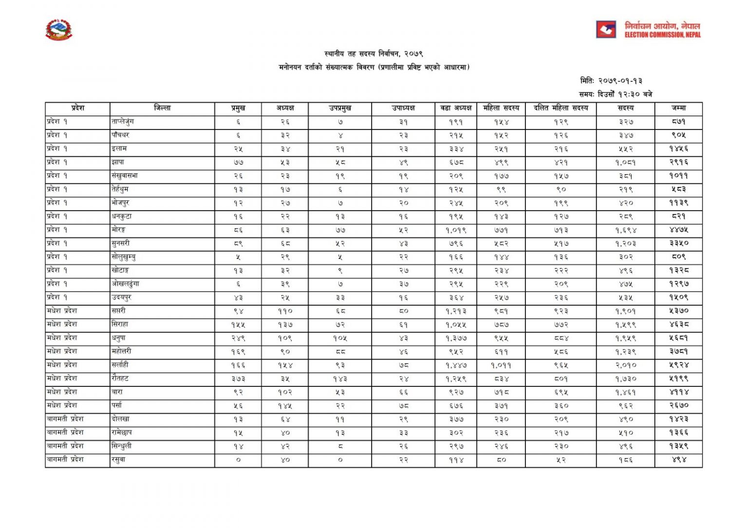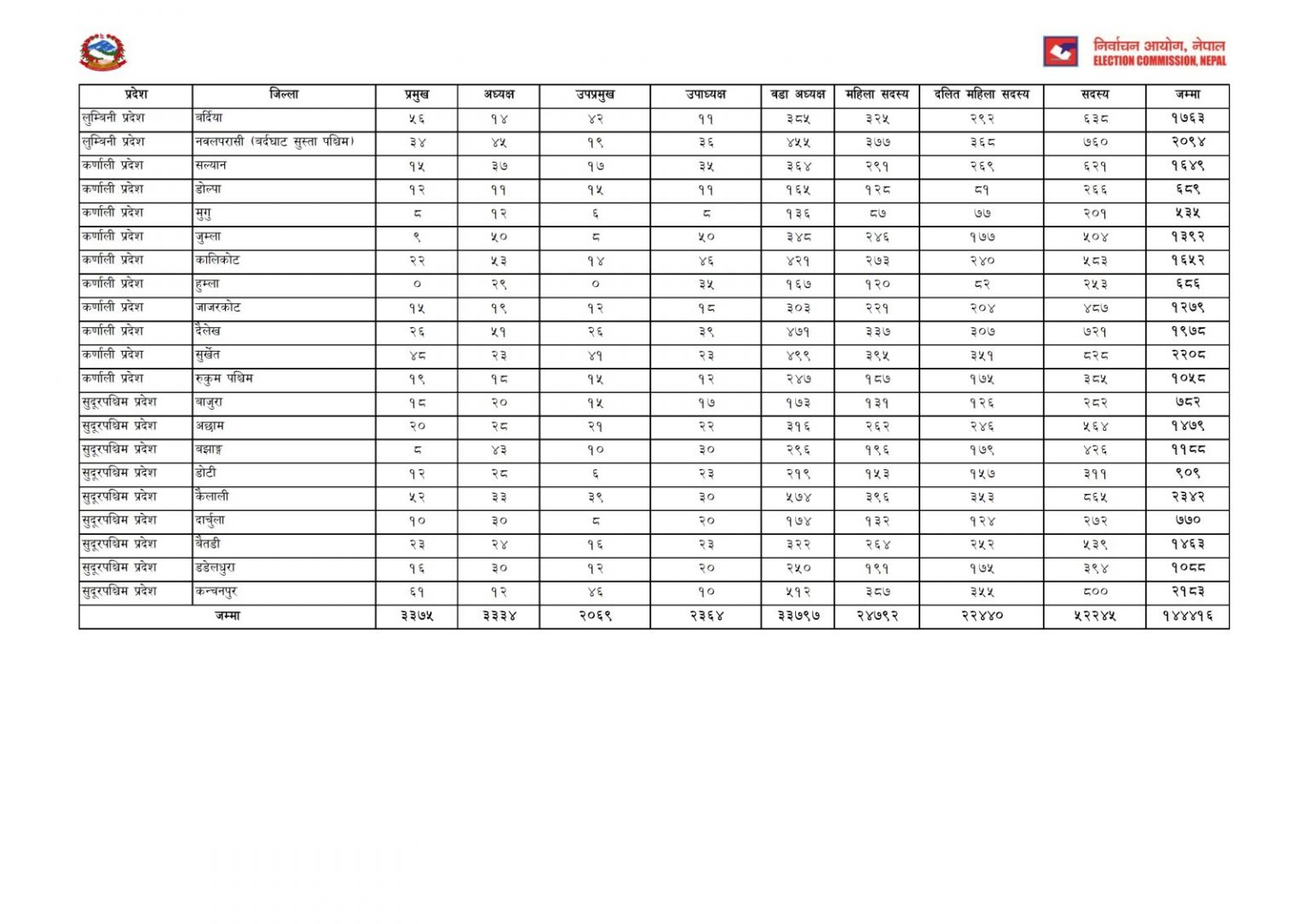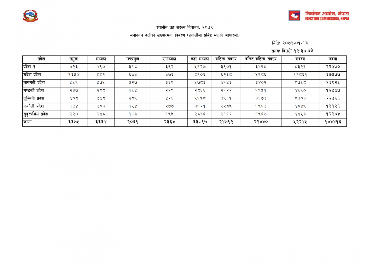 काठमाण्डु – स्थानीय तह निर्वाचनका लागि एक लाख ४४ हजार ४१६ जनाले मनोनयन दर्ता गराएका छन् । निर्वाचन आयोगले मंगलबार मध्यान्ह साढे १२ बजे सार्वजनिक गरेको विवरणअनुसार ७५३ वटै स्थानीय तहका लागि एक लाख ४४ हजार ४१६ जनाले उम्मेदवारी दर्ता गराएका हुन् ।