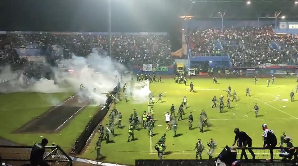 भीडलाई नियन्त्रणमा लिन अश्रुग्यास प्रहार गरिएको थियो । यस अराजकतामा स्टेडियममा भागदौड मच्चिएको थियो । समाचार एजेन्सी एएफपीका अनुसार इन्डोनेसियाको पूर्वी जाभा प्रान्तका प्रहरी प्रमुख निको अफिन्टाले आफ्नो टोलीले खेल हारेको देखेर केही मानिसहरू फुटबल मैदानतर्फ दौडे र उनीहरूलाई रोक्न खोज्दा स्थिति अनियन्त्रित भएको बताए।