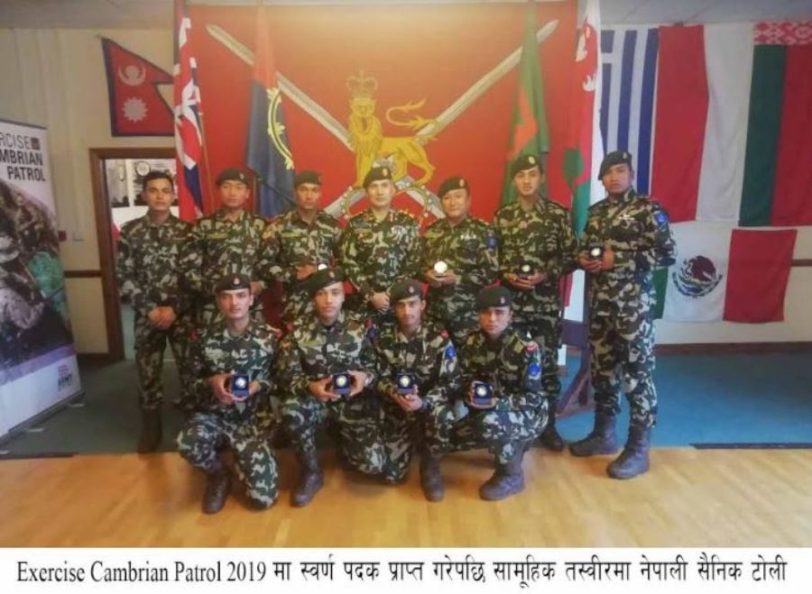 काठमाडौं । २०१४ बाट भाग लिँदै आएको संयुक्त सैन्य अभ्यास ‘क्याब्रियन पट्रोल–२०१९’ मा नेपाली सेनाले स्वर्ण पदक पाएको छ । असोज ६ गते मित्रराष्ट्र संयुक्त अधिराज्यतर्फ प्रस्थान गरेको प्रमुख सेनानी अशिम देव गुरुङको नेतृत्वमा १० जनाको सैनिक टोलीले सो स्वर्ण पदक पाएको नेपाली सेनाले एक विज्ञप्ति जारी गर्दै जानकारी दिएको छ ।
