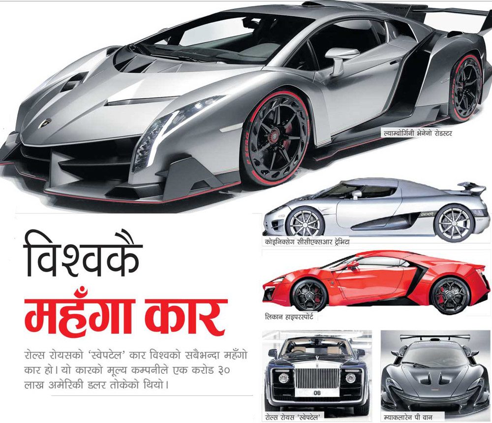 इटालियन प्रिमियम कार निर्माता कम्पनी ल्यामबोरघिनी विश्वकै महँगा र तीव्र गतिका कार निर्माण गर्न प्रख्यात मानिन्छ । ल्याम्बोरघिनीको भेनेनो रोडस्टर विश्वको तेस्रो महँगो कारमा पर्छ । यसको मूल्य ४.५ मिलियन अमेरिकी डलर छ । कम्पनीले ५०औं वर्ष पूरा गरेको अवसरमा रोडस्टर निर्माण गरेको हो । स्पेनमा ‘भेनेनो’ शाब्दिक अर्थ ‘विष’ हो । शाब्दिक अर्थजस्तै यो कारको बनावट पनि घातक रहेको छ ।