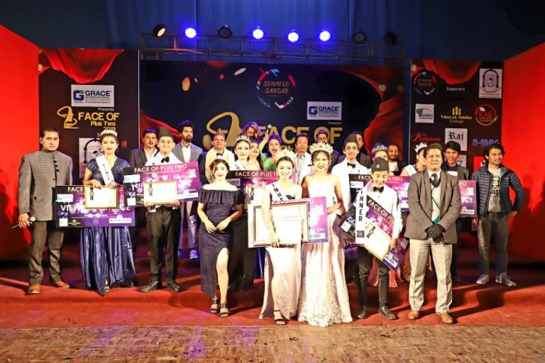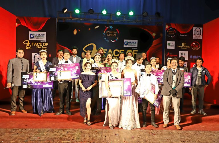 ग्रेस इन्टरनेश्नलले राजधानीकोे कमलादीस्थित प्रज्ञा प्रतिष्ठानमा आयोजना गरेको ‘फेसअफ प्लस टु २०१९’को अन्तिम प्रतिस्पर्धामा युवातर्फ लुम्बिनी कलेजका समिर दाहालले फष्ट रनरअप र इन्साईट भिजनका आकाश बुढाथोकीले सेकेण्ड रनरअपको उपाधि चुम्न सफल भए भने युवतीतर्फ फष्ट रनरअपको उपाधि केब्स कलेजकी इन्कला कार्की र सेकेण्ड रनरअपको उपाधि विनायक सिद्ध कलेजकी सायरा कार्कीले चुमिन् ।