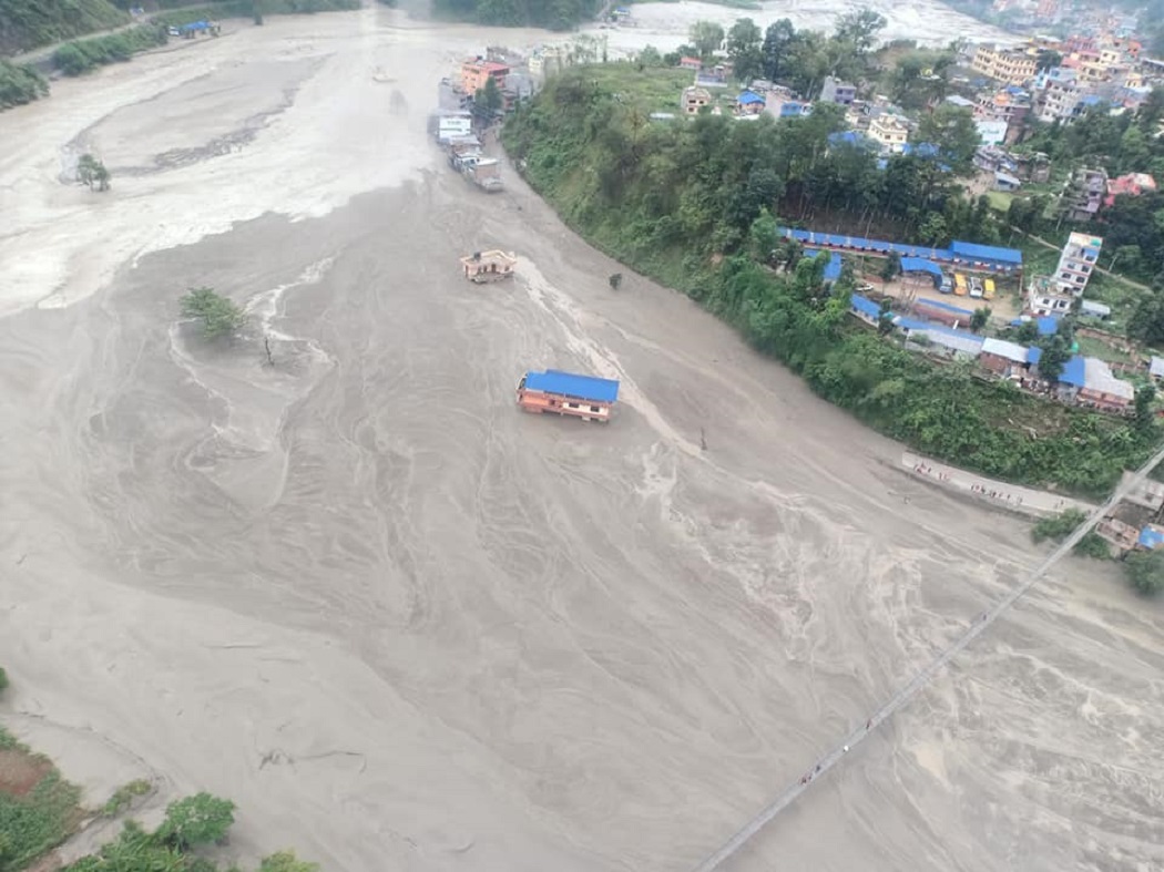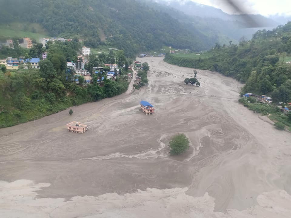हिजाे बेलुका साढे ६ बजे मेलम्ची खानेपानीको मुहानभन्दा ९ किलोमिटरमाथि हेलम्बु १ स्थित नाकोटे भन्ने ठाउँमा पहिरो गएको थियो । बाढी र पहिरोले हेलम्बुको तिम्बु बजार सिंगै बगाएको छ ।