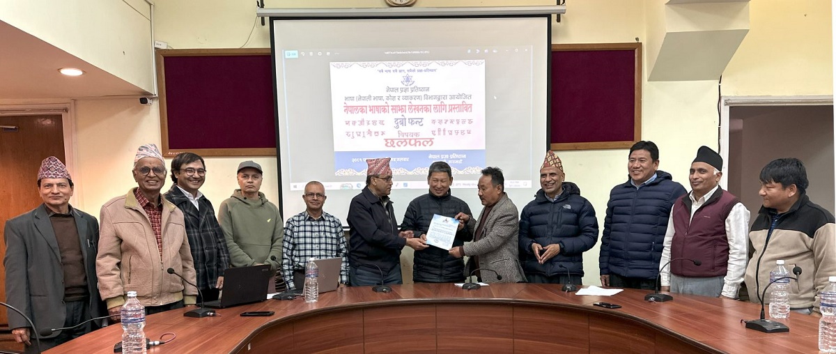 काठमाण्डु- नेपालमा बोलिने १२५ भाषाका लागि साझा लेखन पद्धति निर्माण गर्ने उद्देश्यले एउटै फन्ट निर्माण गरिएको छ । नेपाल प्रज्ञा प्रतिष्ठाले गठन गरेको नेपालका भाषाको साझा लेखन पद्धतिको विकास अध्ययन कार्यदल र आवरण प्रकाशनबीचको सहमतिअनुसार फन्ट निर्माण गरिएको हो ।