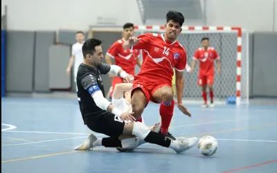 काठमाण्डु – एएफसी फुटसल एसियन कप छनोटमा नेपाल सोमबार ताजकिस्तानसँग ११–१ गोल अन्तरले पराजित भएको छ ।कीर्गिस्तानको बिस्केकमा ताजकिस्तानसँग पराजित भएसँगै नेपाल प्रतियोगिताबाट एक खेलअघि नै बाहिरिएको हो ।