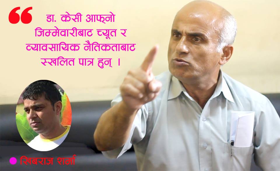 कुनै पनि कर्मचारी कुनै पनि अर्थमा विद्रोही हुनै सक्दैन । तर, डा. केसीले त्यो दम्भ देखाइरहेका छन । डा. केसी कस्तो प्रवृत्तिको मान्छे हुन् भन्ने कुरा उनकै सहकर्मी डा. भगवान कोइरालाले प्रष्ट भाषामा कान्तिपुर टेलिभिजनको एक लोकप्रिय कार्यक्रम ‘फायर साइड’मा व्यक्त गरेका छन् । एक प्रश्नको जवाफ दिने क्रममा कोइरालाले भिसी र केसीको चेपुवामा परेर महाराजगञ्ज शिक्षण अस्पतालको प्रमुख पदबाट राजीनामा गरेको तीतो अनुभव व्यक्त गरेका छन् ।