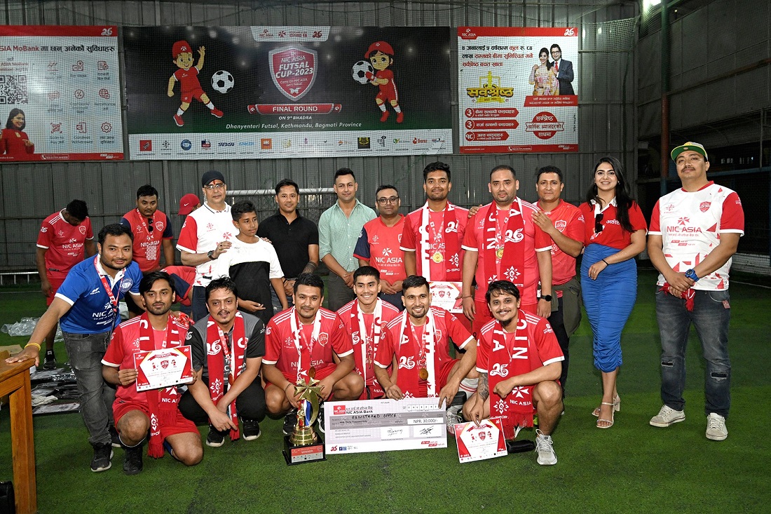 काठमाण्डु- एन आई सी एशिया बैंकले आयोजना गरेको एन आई सी एशिया फुटसल कप २०२३ प्रतियोगिता सम्पन्न भएको छ । कर्मचारीहरुबीचको टिमवर्क, नेतृत्व विकास तथा स्वस्थ प्रतिस्पर्धालाई प्रबद्र्धन गर्ने उद्देश्यअनुरुप आयोजित यस प्रतियोगितामा प्रत्यक्ष र अप्रत्यक्ष रुपमा बैंकका ३९ सय भन्दा बढी कर्मचारीहरुको उत्साहपूर्ण सहभागीता भएको बैंकले जनाएको छ ।