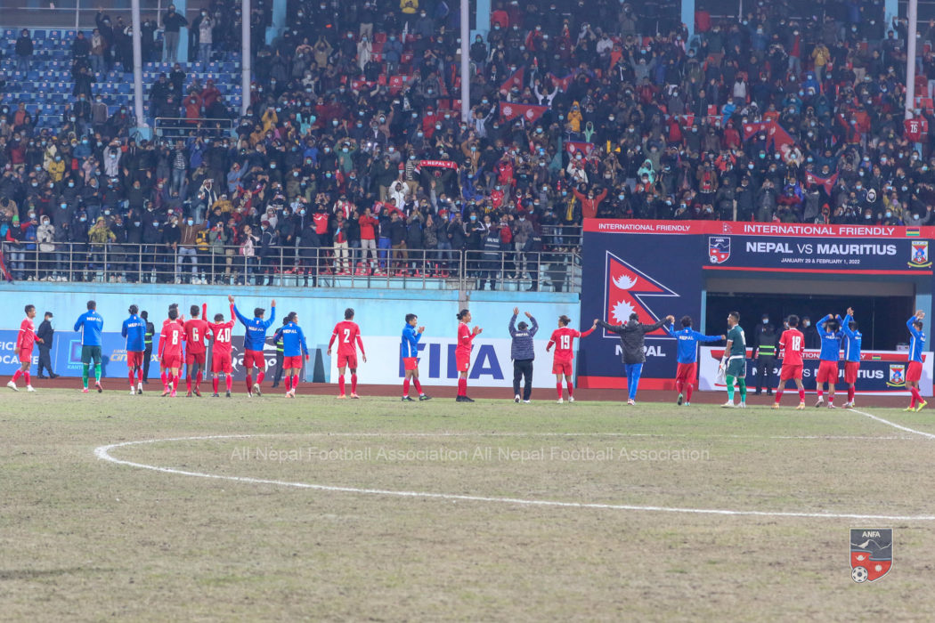 यता, शारीरिक रुपमा बलियो रहेको मौरिससविरुद्ध पहिलो हाफमा फिक्का देखिए पनि नेपालले दोस्रो हाफमा लय समातेको थियो । अखिल नेपाल फुटबल संघ (एन्फा)ले जारी गरेको पत्रअनुसार पाँच हजार दर्शक उपस्थित रहेको मैदानमा विमल घर्ती मगरले ५५औं मिनेटमा गोल गर्दा नेपालले आफ्नो गति समात्यो ।