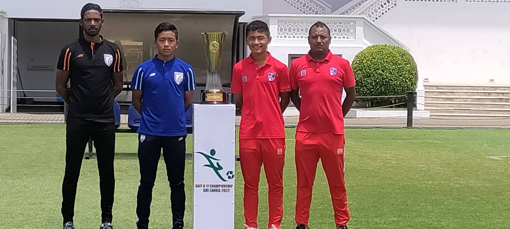 काठमाण्डु – यू-१७ पुरुष साफ च्याम्पियनसिप उपाधिका लागि नेपाल र भारतबीच बुधबार प्रतिस्पर्धा हुँदैछ ।
