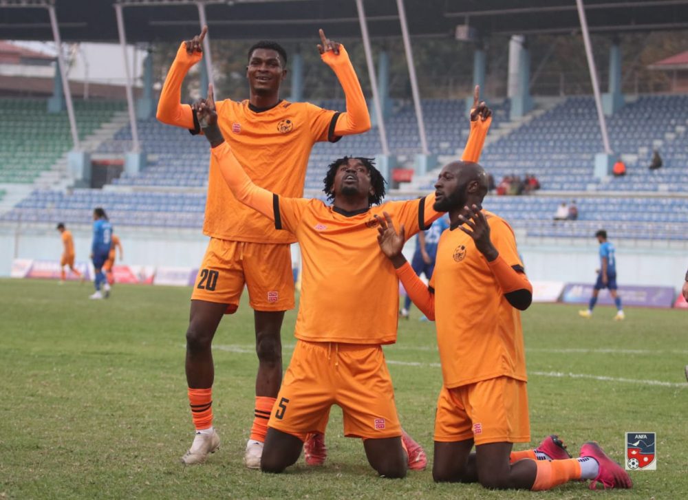 त्रिपुरस्थित दशरथ रंगशालामा सम्पन्न खेलमा शेर्पाको जितमा म्यानुयल आग्योमाङ र पिस्टोन मुतम्बाले गोल गरे । जावलाखेलका एन्कोटो मासोबीले एक गोल फर्काए ।