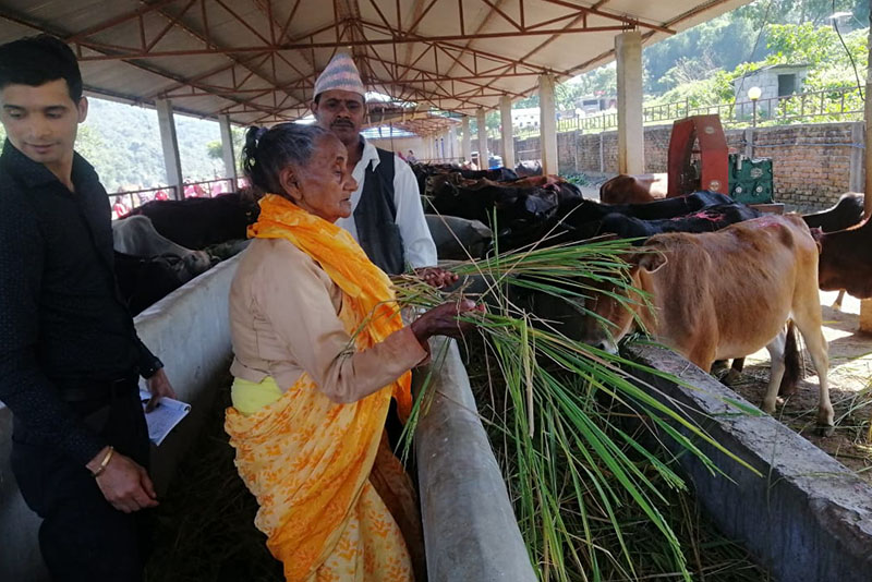 गाईलाई हरियो धान काटेर खुवाउने प्रचलन : परम्परा धान्दै ९० वर्षीया गंगादेवी
