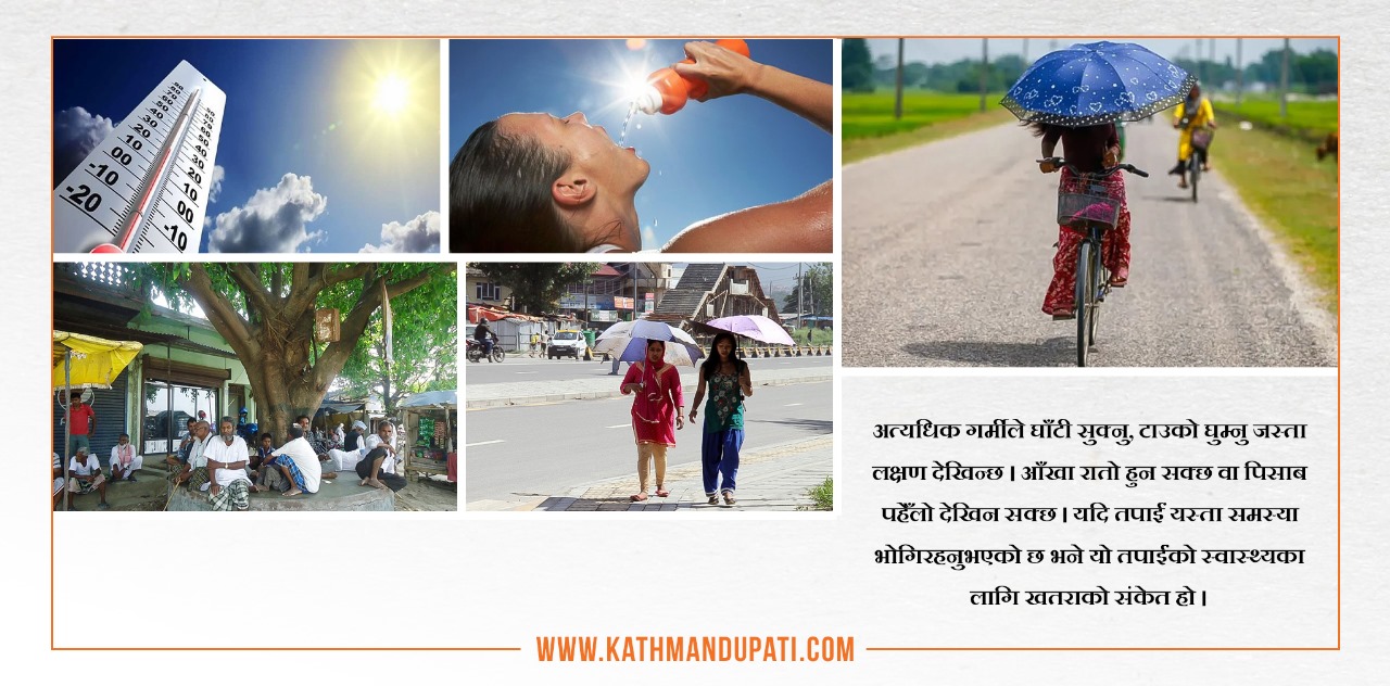 यदि यस्तो बढ्दो तापक्रममा शरीरको राम्रो हेरचाह गरिएन भने गम्भीर असर पर्न सक्छ । त्यसैले विशेषज्ञहरूले आवश्यक सावधानी अपनाउन सुझाव दिएका छन् ।