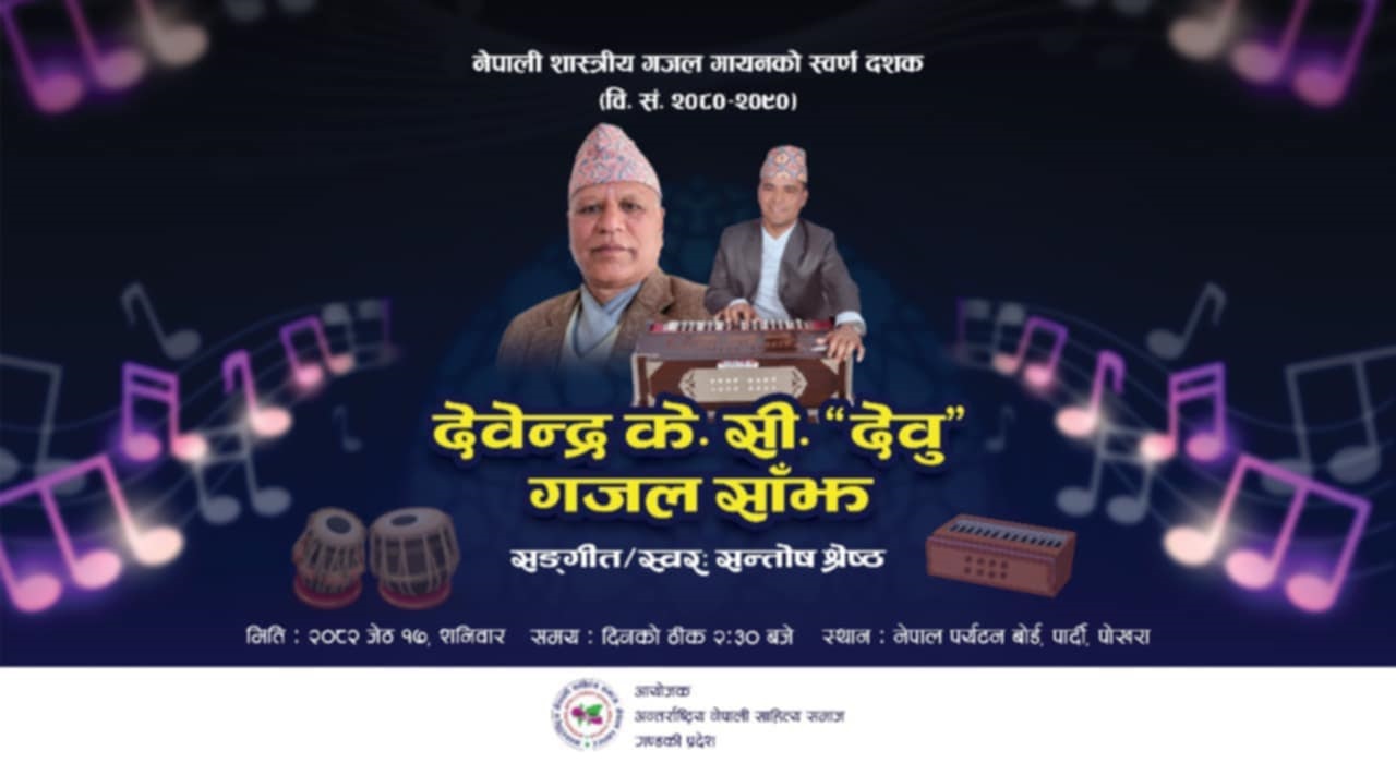 अन्तर्राष्ट्रिय नेपाली साहित्य समाज, गण्डकी प्रदेशले आयोजना गर्ने कार्यक्रममा पोखरा र आसपासका स्वनामधन्य स्रष्टा, संगीतकर्मी, पत्रकार, साहित्य÷संगीतप्रेमीको उपस्थिति हुने आयोजकले जनाएको छ ।