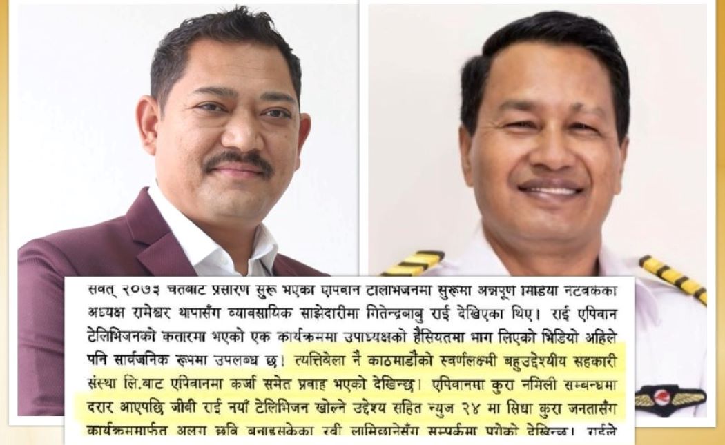 ‘जीबी राई नयाँ टेलिभिजन खोल्ने उद्देश्यसहित न्युज २४ सीधा कुरा जनतासँग कार्यक्रममार्फत अलग छबि बनाइसकेका रवि लामिछानेसँग सम्पर्कमा पुगेको देखिन्छ । राईले एपीवानबाट जाने बेलामा त्यहाँका मार्केटिङ प्रमुखलाई समेत ग्यालेक्सी फोरकेमा साथै लिएर गएको बताइन्छ,’ प्रतिवेदनमा लेखिएको छ ।