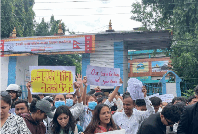 ‘जनताको पैसा जनताकै लागि’, ‘जनताको पसिना नेताको ऐश होइन’, ‘जनताको आवाज रोकिँदैन कहिल्यै’ लगायतका प्लेकार्ड बोकेर उनीहरूले प्रदर्शन गरेका हुन् ।
