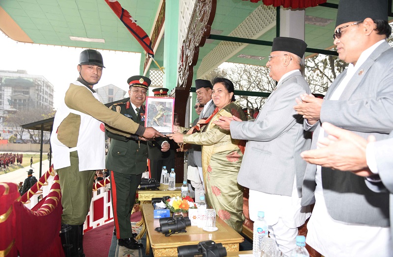 म्यूजिकल राइडमा घोडसवार सहसेनानी मधु शाह प्रमथ र घोडसवार सहसेनानी कृष्ण बासी द्वीतिय तथा शोजम्पमा घोडसवार अम. खिलध्वज खड्का प्रथम र घोडसवार सहसेनानी सज्जनध्वज थापा द्वीतिय भएका छन्। उनीहरूलाई राष्ट्रपति भण्डारीले शिल्ड प्रदान गरिन्।