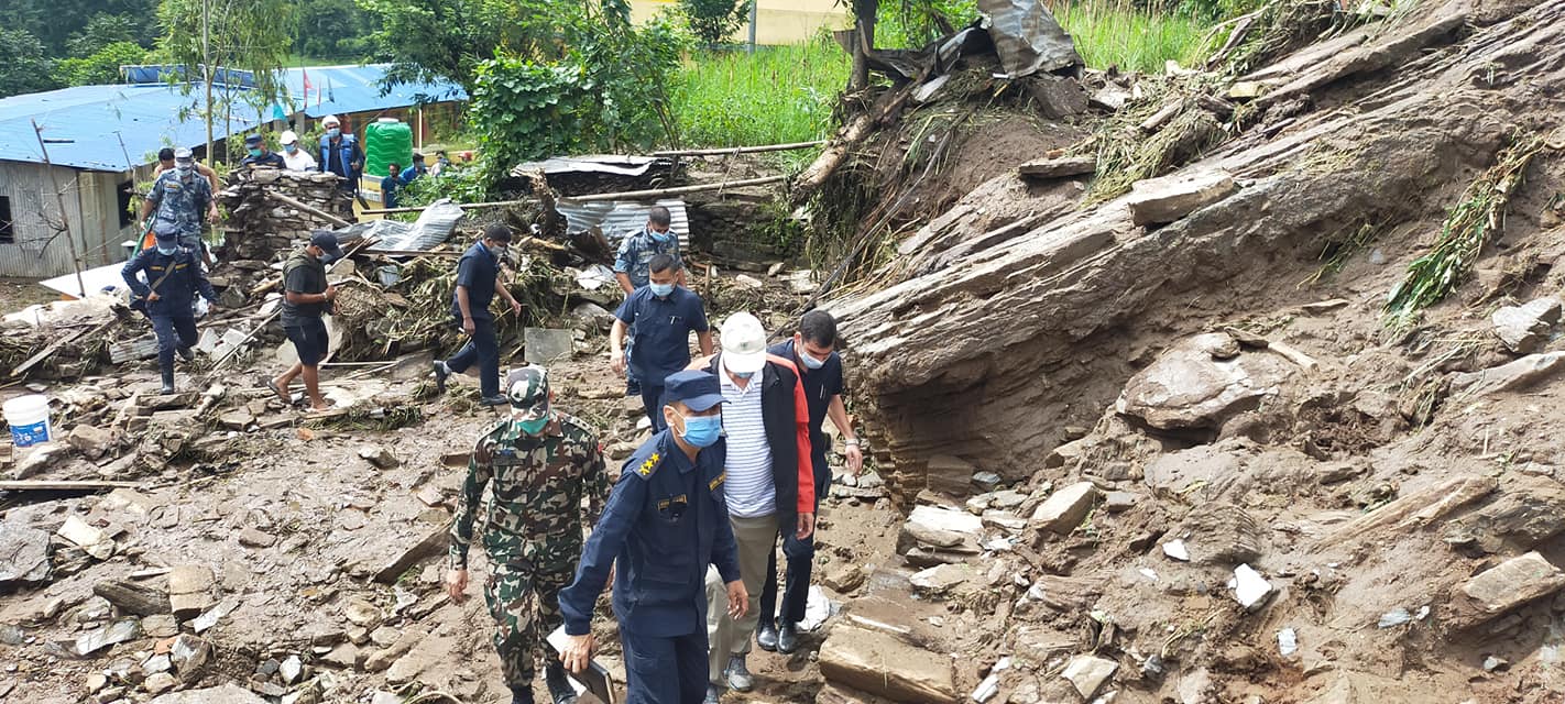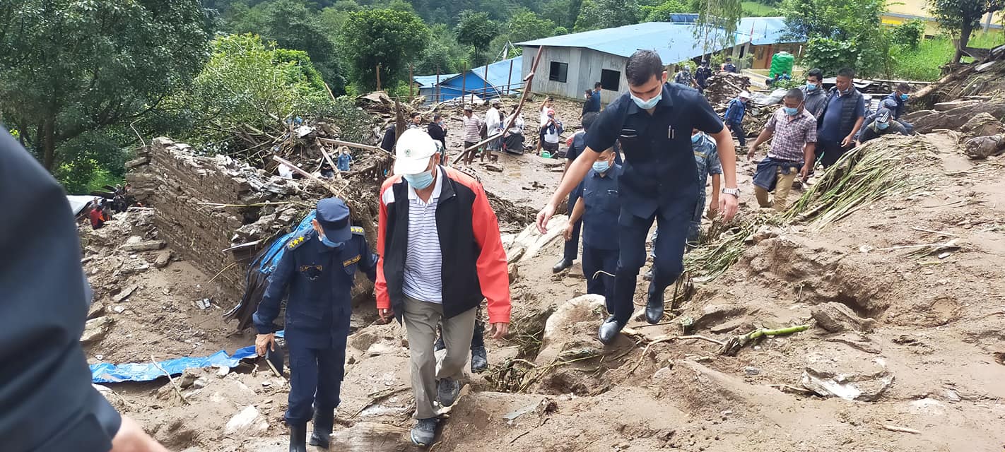 घुम्थाङ पहिरोः ६ जनाको शव भेटियो, सभामुख घटनास्थलमा (फोटो)