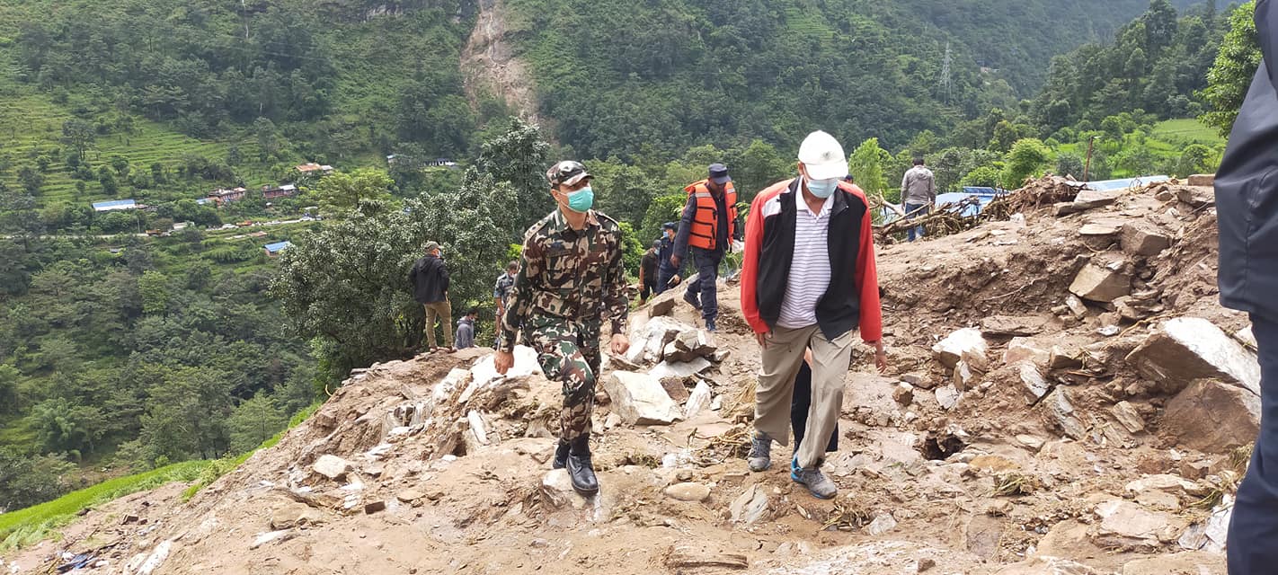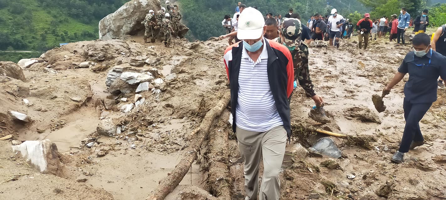 सभामुख सापकोटा आइतबार बिहान स्थलमार्गबाट पहिरोस्थल पुगेका हुन् । उनले पहिरो प्रभावितलाई भेट गरेका छन् । घटनास्थलमा अहिले सुरक्षाकर्मी र स्थानीयले उद्धार कार्य जारी राखेका छन् ।
