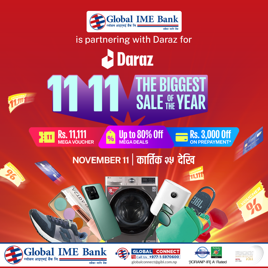 काठमाण्डु – ग्लोबल आइएमई बैंक लिमिटेडका ग्राहकहरुले लोकप्रिय अनलाइन सपिङ्ग प्लेटफर्म दराजले सार्वजनिक गरेको “दराज ११ः११ अफर”मा २० प्रतिशतसम्म छुट पाउने भएका छन् ।