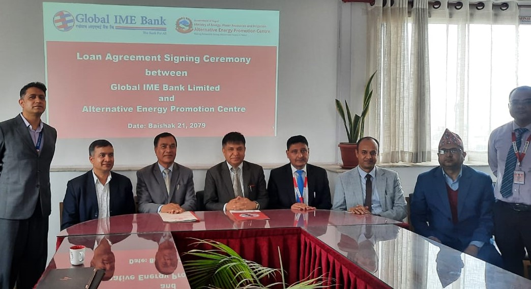 काठमाण्डु – ग्लोबल आईएमई बैंक र वैकल्पिक ऊर्जा प्रवर्द्धन केन्द्रबीच विभिन्न सौर्य मिनी ग्रिड परियोजना निर्माणमा लगानी गर्नेबारे सम्झौता भएको छ । बुधबार उक्त समझदारी पत्रमा बैंकका प्रमुख कार्यकारी अधिकृत रत्नराज बज्राचार्य तथा केन्द्रका कार्यकारी निर्देशक डा. मधुसुधन अधिकारीले हस्ताक्षर गरेका हुन् ।