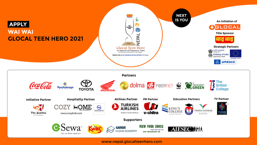 काठमाण्डु – ग्लोकल टीन हीरो नेपाल २०२१ का लागि आवेदन खुलेको छ । किशोर किशोरीहरुमा भएको प्रेरणा र उत्साहलाई प्रस्फुटन गरी उनीहरुले समाजमा गरेका प्रभावकारी कार्यलाई कदर गर्दै उनिहरुले गरेको कामको सम्मान एवं प्रचार गर्ने उधेश्यले ग्लोकल प्रा.लीले हरेक बर्ष कार्यक्रम गर्दै आएको छ ।