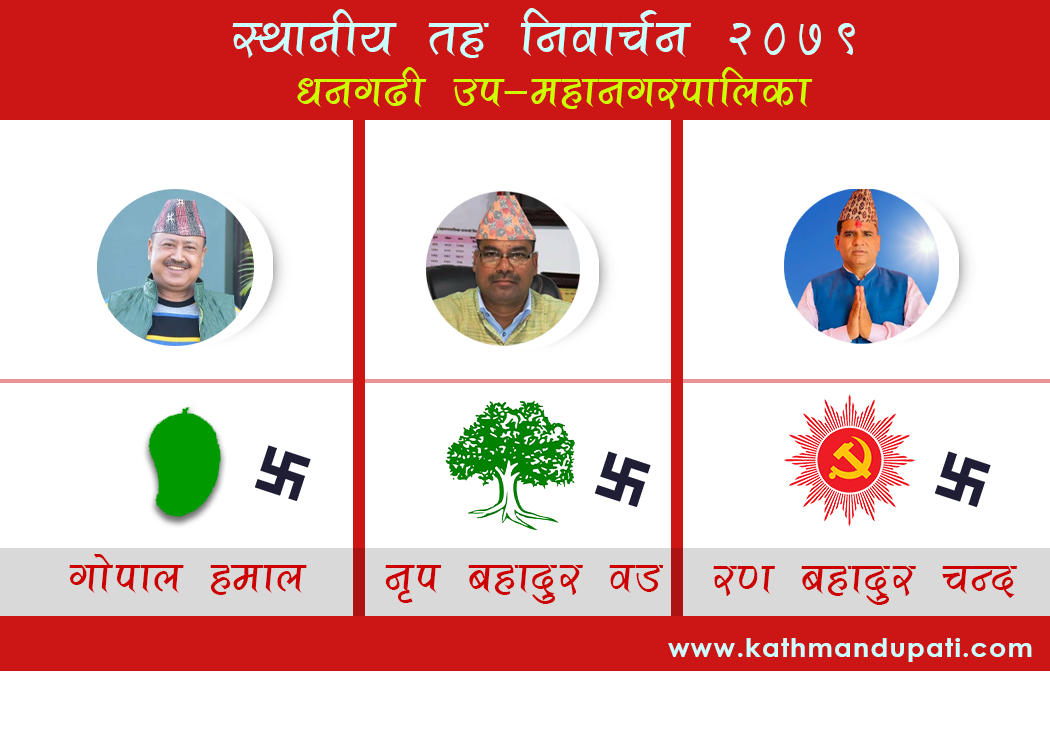धनगढी – धनगढी उपमहानगरपालिका मेयरमा स्वतन्त्र उम्मेदवार गोपाल हमालको भारी मतान्तरले अगाडि बढेका छन् । मंगलबार बिहानसम्म १४ हजार ७३६ मतगणना हुँदा हमालले ६ हजार ५९६ मत ल्याएका छन् । हमाललाई पच्छ्याइरहेका कांग्रेसका नृपबहादुर वडले ३ हजार ३५४ मत मात्र पाएका छन् । एमालेका रणबहादुर चन्दले २ हजार ६७४ मत ल्याएका छन् ।