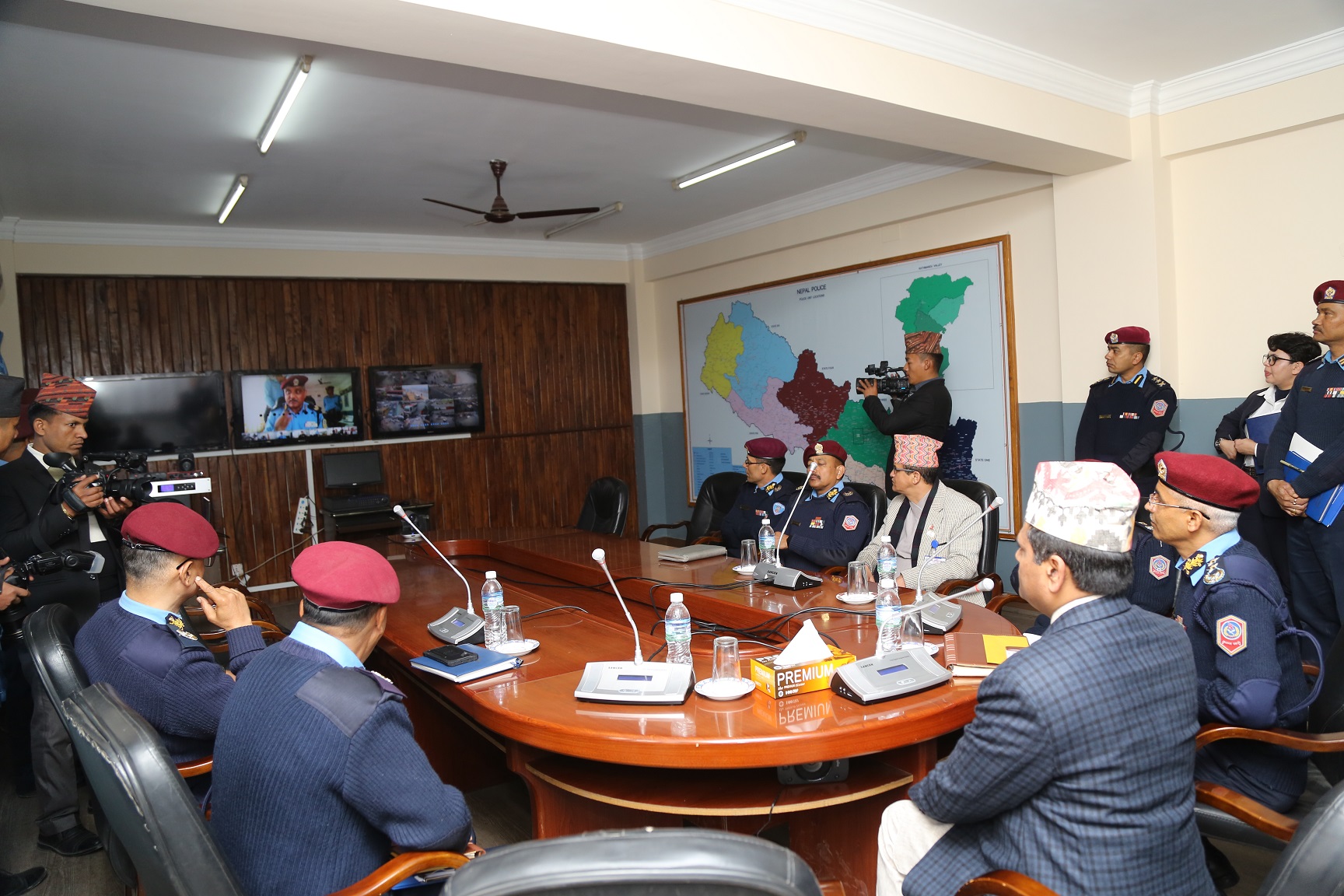 प्रहरी प्रधान कार्यालयको कमाण्ड सेन्टरबाट आज सातै प्रदेश प्रहरी कार्यालयका प्रमुखलाई भिडियो कन्फ्रेन्सद्वारा सम्बोधन गर्दै गृहसचिव न्यौपानेले सबै प्रदेशका शान्ति सुरक्षाको अवस्था दुरुस्त राखी जनतालाई सुरक्षाको पूर्ण प्रत्याभूति दिलाउन निर्देशन दिएका हुन् ।