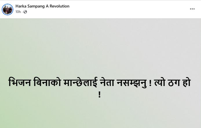 सामाजिक सञ्जाल फेसबुकमा राष्ट्रिय स्वतन्त्र पार्टी (रास्वपा) सभापति रवि लामिछानेलाई सुप्रिम सहकारी ठगी प्रकरणमा रूपन्देही जिल्ला अदालतले एक करोड धरौटीमा छोड्न आदेश गरेको सन्दर्भमा प्रमुख साम्पाङको यस्तो प्रतिक्रिया आएको हो ।