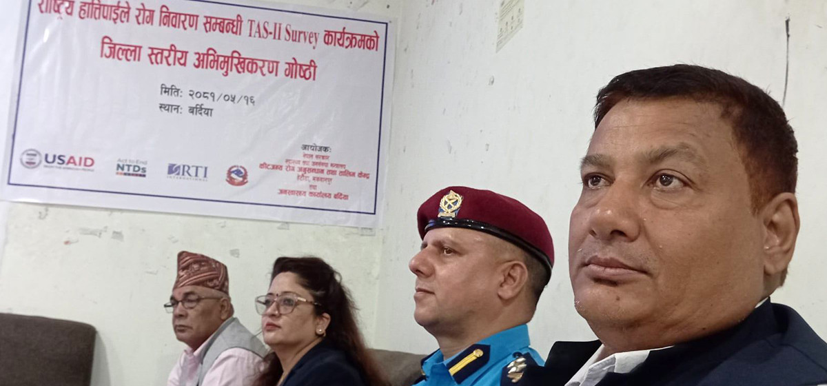 बर्दिया-बर्दियाका सामुदायिक तथा संस्थागत विद्यालयका कक्षा १ र २ मा अध्ययनरत बालबालिकामा राष्ट्रिय हात्तीपाइले रोग निवारण कार्यक्रमअन्तर्गत ‘ट्रान्समिशन एसिसमेन्ट सर्भे’ (टास) सुरु गरिएको छ ।