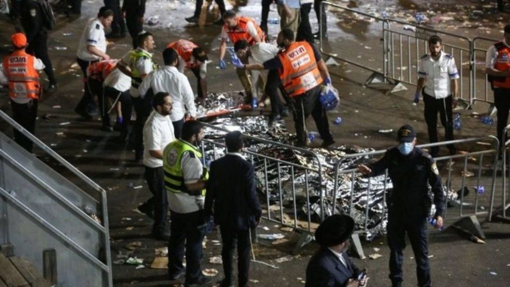 उत्तरी इजरायलस्थित माउन्ट मेरोनको फेदीमा दशौँ हजार मानिस यहुदी पर्व मनाउन भेला भएका थिए। आपत्कालीन सेवा प्रदायकहरूले घटनास्थलमा घाइतेहरूको उपचार गरिरहेका छन्।