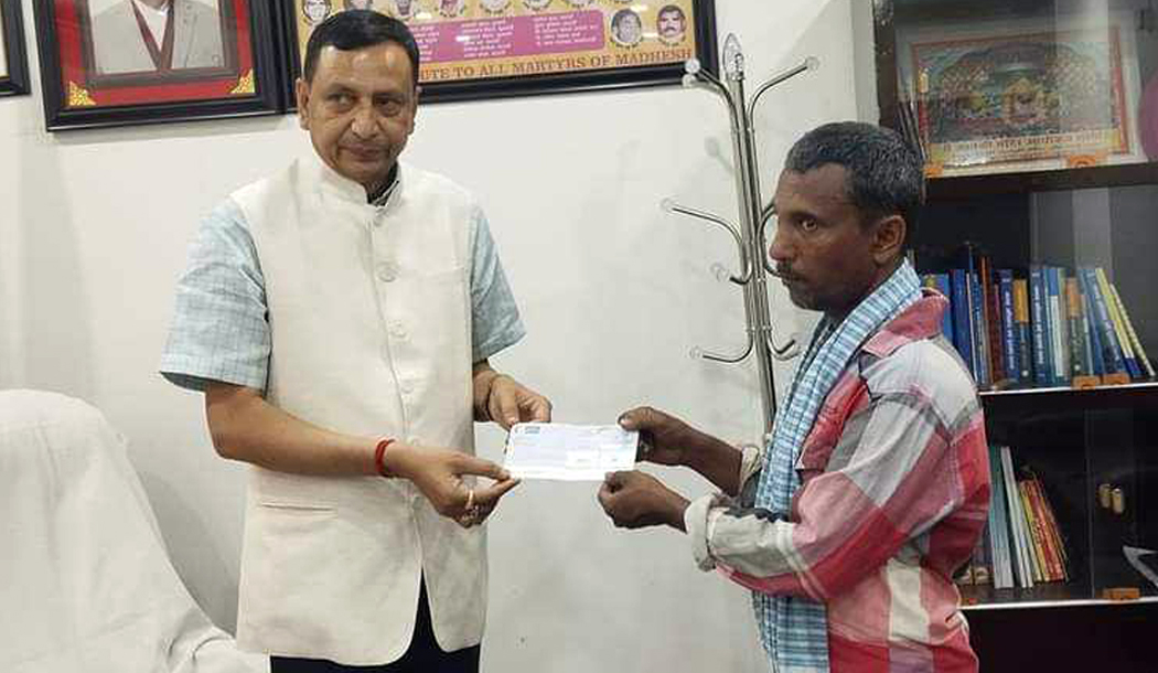 मृतक शाहका बुवा सोमन साहलाई मुख्यमन्त्री सरोजकुमार यादवले ५ लाखको चेक हस्तान्तरण गरेका छन् ।