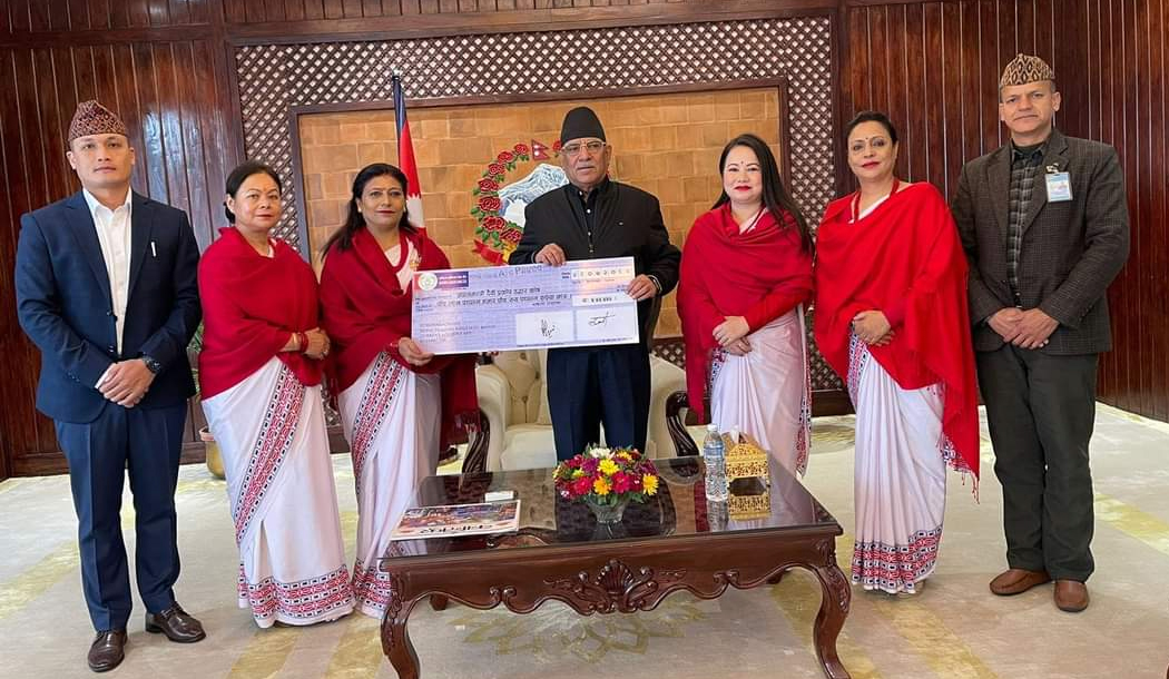 प्रधानमन्त्री निवास बालुवाटारमा सोमबार प्रधानमन्त्री पुष्पकमल दाहाल ‘प्रचण्ड’लाई नेपाल प्रहरी श्रीमती संघकी अध्यक्ष श्रीमती लक्ष्मी कुँवरले संघको तर्फबाट चेक हस्तान्तरण गरिन् ।