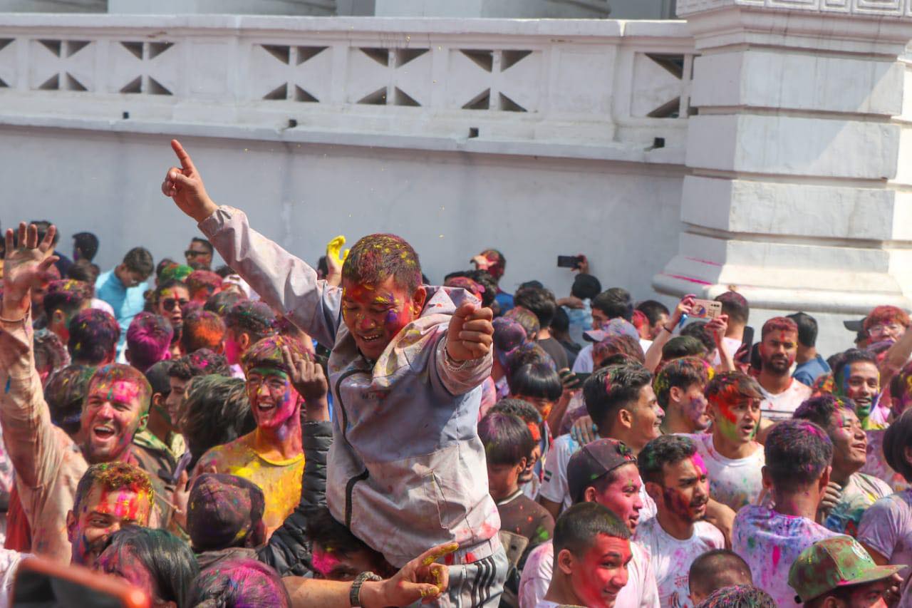 फागु पूर्णिमा अवसरमा काठमाडौंको वसन्तपुरमा भेला भएका बालबालिकादेखि युवाहरुले हर्षाेल्लासका साथ मनाइरहेका छन् । एक अर्कालाई रङ लगाएर शुभकामना साटासाट गर्दै नाचगान गरेर फागुपूर्णिमा मनाइरहेका छन् ।