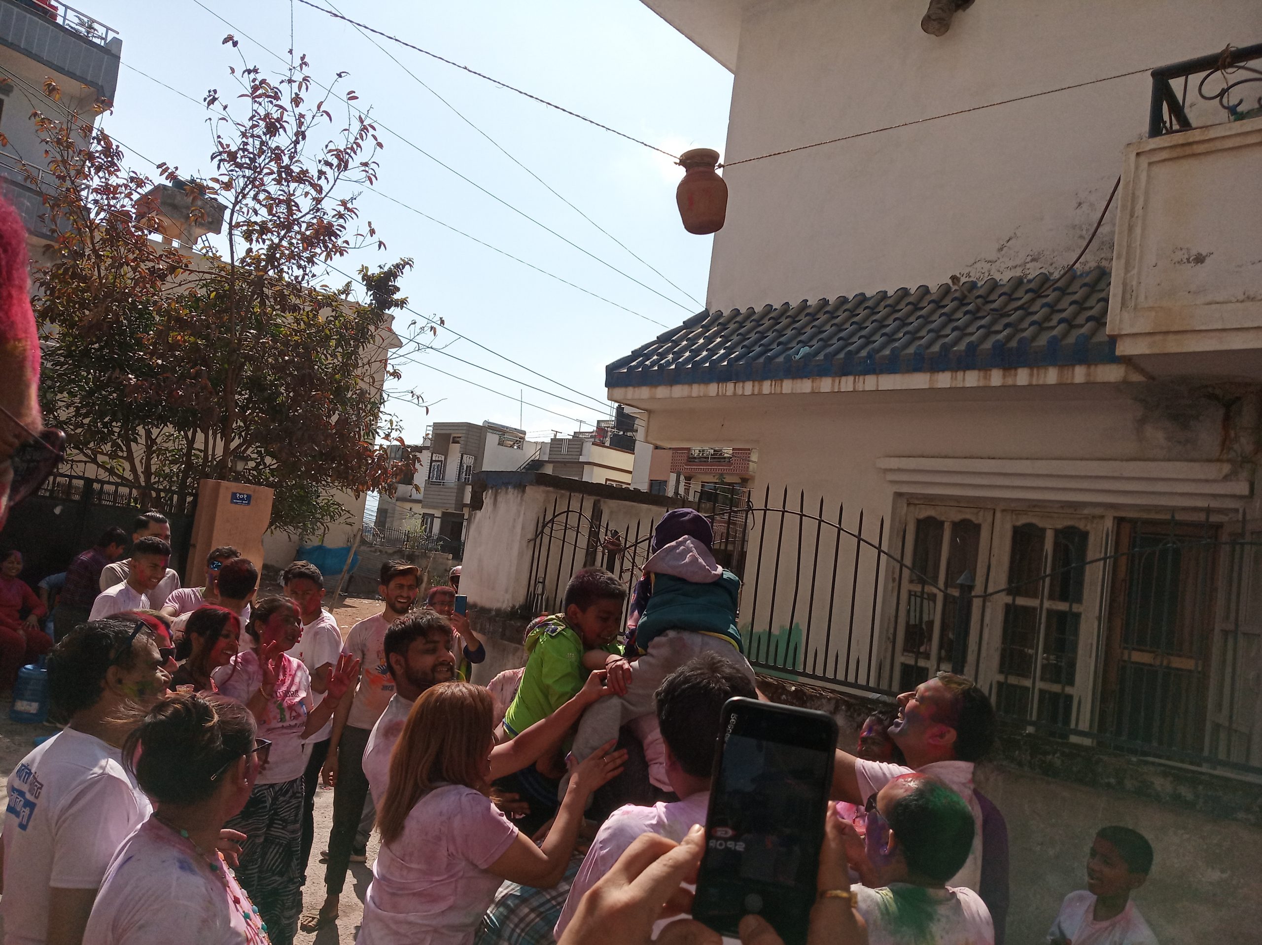 सडकमा केही मानिस मात्रै रातो र अबीर लगाएर हिँडेको देखियो । तर, काठमाडौैंको गोठाटारमा भव्य रुपमा होली मनाइएको छ । टोल सुधार समिति हात्तिडाँडा समाजले पनि भव्य रुपमा होली मनाएको समाजका अध्यक्ष गणेश थापाले जानकारी दिए । समाजले हाँडी फुटाउने खेलको आयोजना गरेको थियो । होलीले सामाजिक सद्भाव कायम गर्न सहयोग पुगेका अध्यक्ष थापाले बताए ।