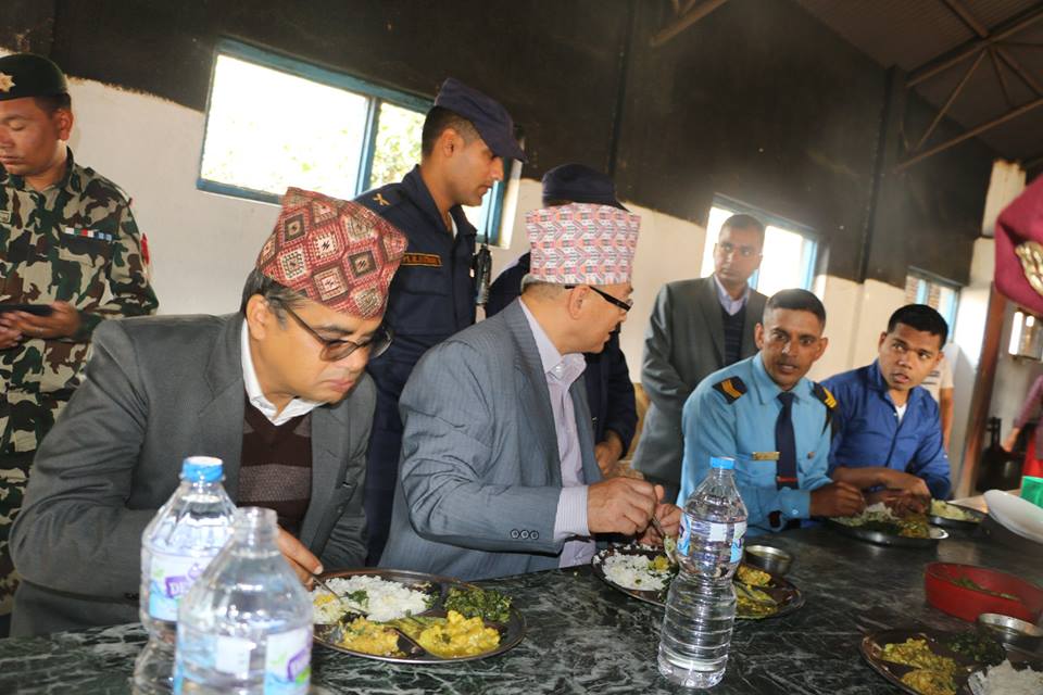 दाल, भात, आलु र गोभीको तरकारी, साग र आलुका अचार खानमा पाकेको थियो । गृहमन्त्री आउने जानकारी नपाएकै कारण वृत्तको प्रहरीले सलामी समेत अर्पण गर्न पाएनन् । सो अवसरमा उनले जनताको जिउ, धनको सुरक्षाका लागि दत्तचित्त भएर लाग्न वृत्तका प्रहरीलाई निर्देशन दिए ।