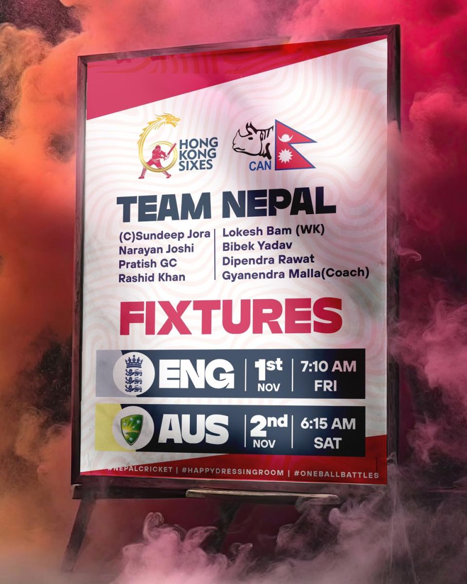 काठमाण्डु-नेपाल क्रिकेट संघ (क्यान) ले हङकङमा आयोजना हुने हङकङ सिक्सेस प्रतियोगितामा सहभागी हुने खेलाडी टिम र प्रशिक्षक घोषणा गरेको छ ।