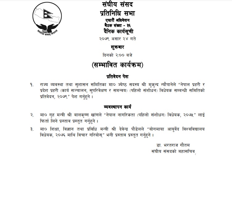 काठमाण्डु – प्रतिनिधिसभाको बैठक आज शुक्रबार बस्दैछ । दिउँसो २ बजे बस्ने बैठकबाट नागरिकता विधेयक फिर्ता लिने तयारी सरकारको छ ।