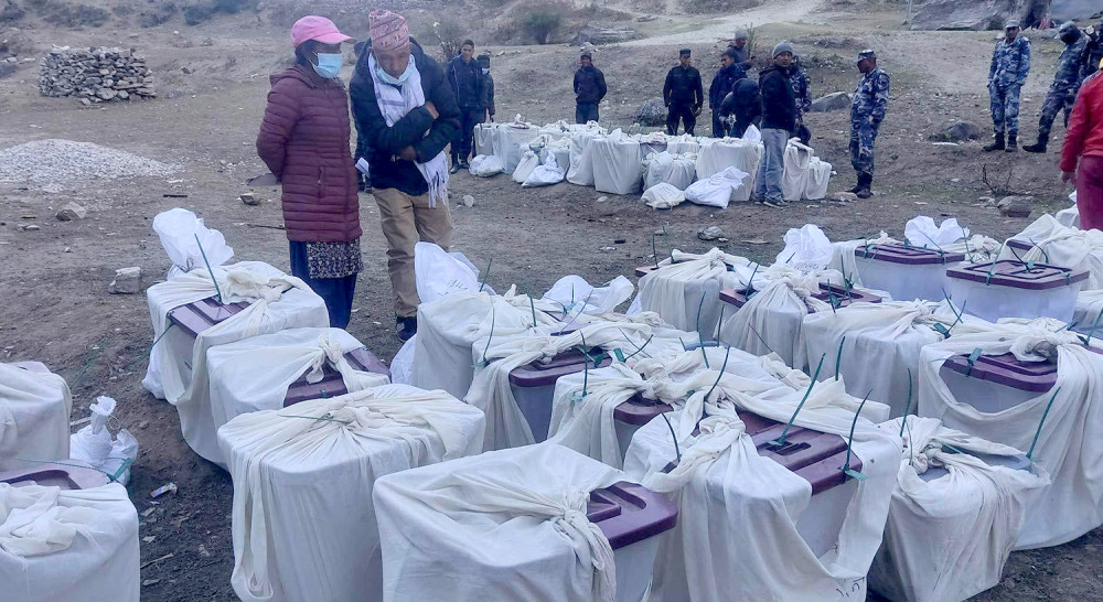 सर्केगार्डमा ताँजाकोटका सात, अदानचुलीका आठ, चङ्खेलीका आठ र सर्केगार्डका ११ वटा मतदान केन्द्रका मतपेटिका छन् । यस्तै उत्तरी नाम्खा गाउँपालिका–६ लिमीमा निर्वाचनमा खटिएका कर्मचारी, म्यादी प्रहरी, नेपाल प्रहरी, नेपाली सेना र कर्मचारी गरेर ४९ जना बाटोमै रोकिएका छन् । न्यालु लेकमा हिउँ जमेकाले पैदल हिँडेर आउन समस्या हुने देखिएपछि उनीहरु पनि हेलिकप्टरको पर्खाइमा छन् ।