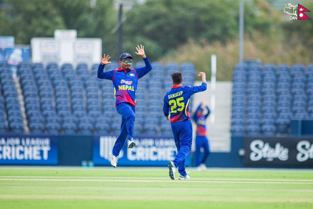२४ बलमा १ चौका सहयोगमा १६ रन बनाएका दीपेन्द्र सिंह ऐरी लेविटकै बलमा क्याच आउट भए। बसिर अहमद ११ रन बनाउँदा आर्यन दत्तको बलमा म्याक्स ओ डाउडको हातबाट क्याच आउट नै भए। करण केसी पनि ११ रन बनाउदा बोल्ड आउट हुन पुगे। सन्दीप लामिछाने २ रनमा रन आउट भए।