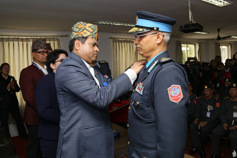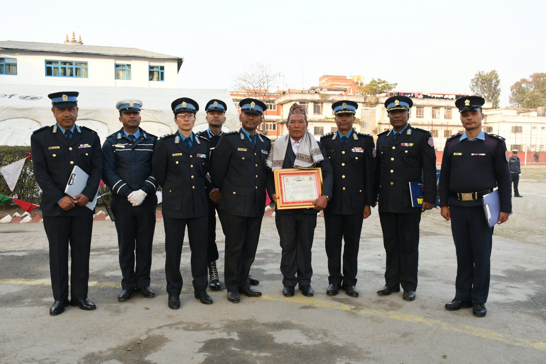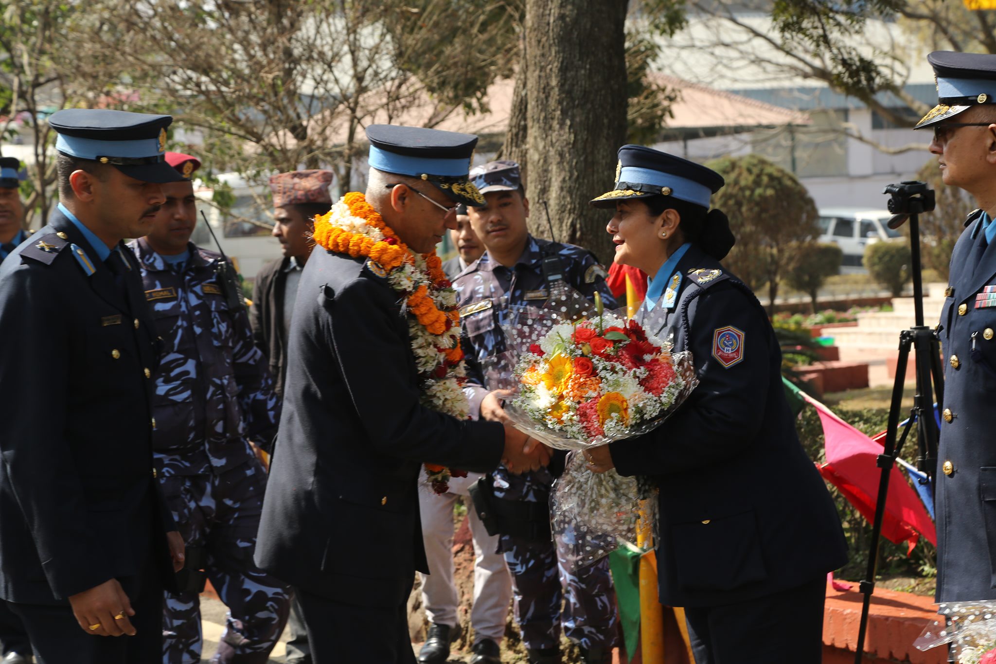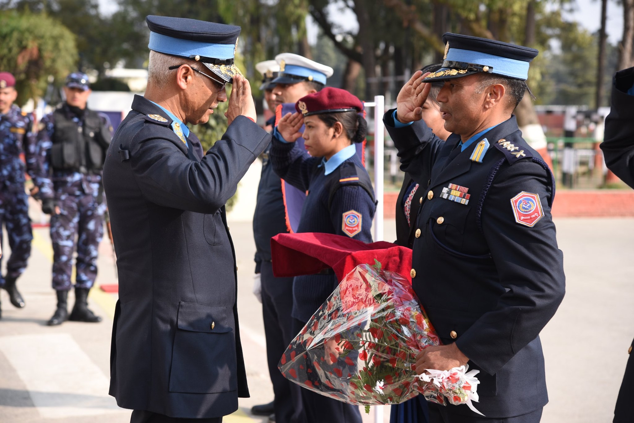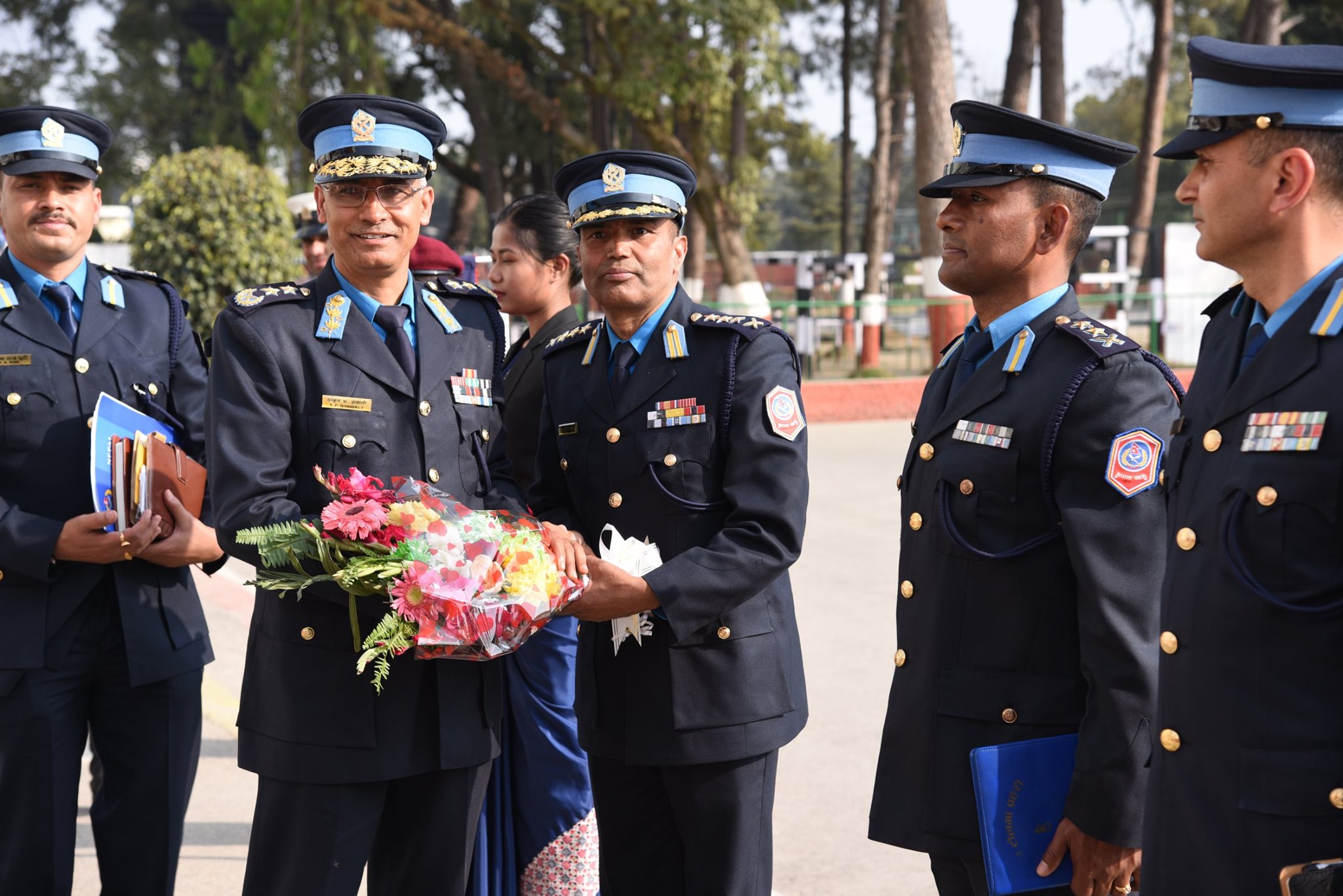त्यहाँ विभिन्न कार्यालयका प्रहरी अधिकारीले उनलाई सलाम ठोक्दै पुष्पगुच्छा दिएर स्वागत गरेका थिए ।