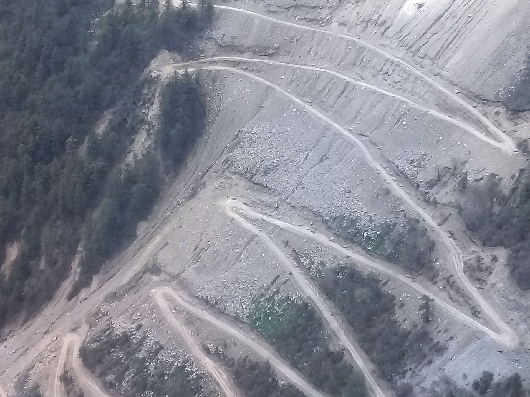 काठमाडौं – महाकाली नदी किनारमा भारतले बनाएको नागबेली बाटो । नदी किनारैकिनार गुञ्जी, कालापानी हुँदै चीनको मानसरोबरमा जोड्न लिपुभञ्याङ जोडेको बाटो यही हो । तल्लो क्षेत्रमा उसले नदी किनारै किनार आफ्नैँ भूभागमा बाटो बनाएको छ भने गुञ्जीबाट भने अतिक्रमित भूभागको प्रयोग गरिएको छ । तस्वीरः नारायण ढुङ्गाना÷रासस
