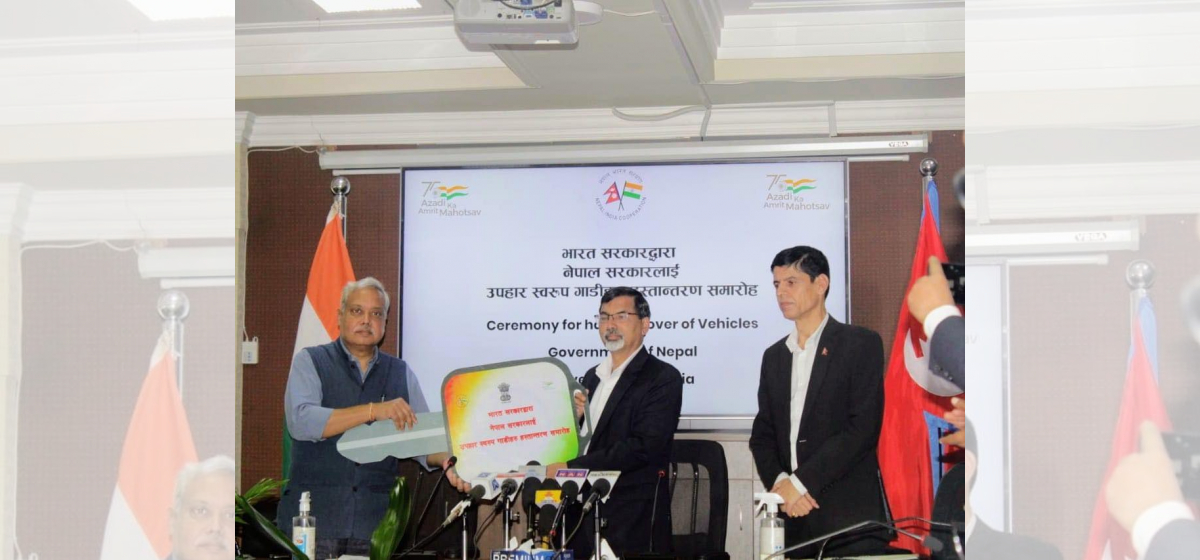 काठमाण्डु – भारतले नेपाललाई २00 वटा सवारीसाधन उपहारस्वरूप उपलब्ध गराएको छ । नेपालका लागि भारतीय राजदूत नवीन श्रीवास्तवले मंगलबार आयोजित एक समारोहबीच अर्थमन्त्री जनार्दन शर्मालाई २०० वटा सवारीसाधन उपहारस्वरुप उपलब्ध गराएकाे हाे ।