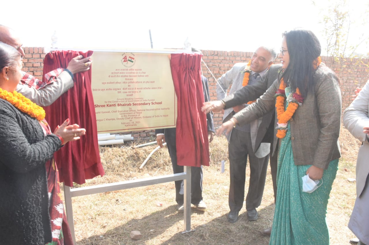 राष्ट्रिय पुनर्निर्माण प्राधिकरणका प्रमुख कार्यकारी अधिकृत सुशील ज्ञवाली र भारतीय राजदूतावासका नियोग उप–प्रमुख नामग्य सी. खम्पाले शिलान्यास गरेका छन् ।