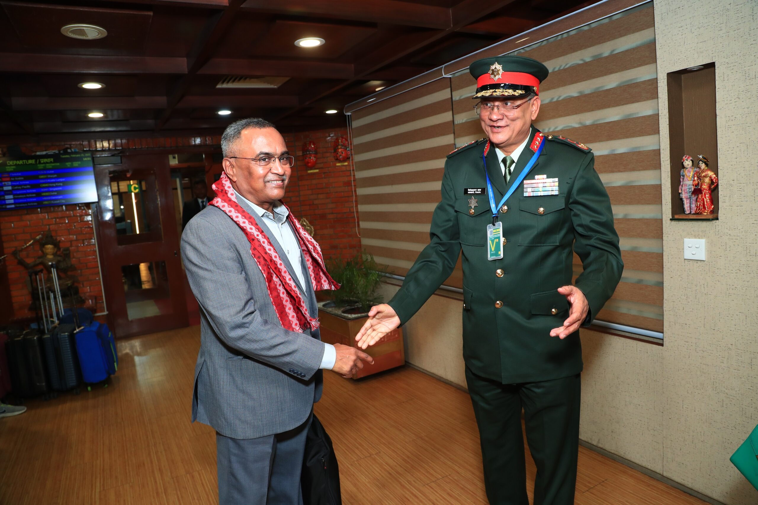 नेपाली सेनाको निमन्त्रणामा जनरल जोगिन्दर जसवन्त सिंह (अ.प्रा.), जनरल दीपक कपुर (अ.प्रा.), जनरल (डा.) विजय कुमार सिंह (अ.प्रा.), जनरल दलवीर सिंह सुहाग (अ.प्रा.), जनरल (डा.) मनोज मुकुन्द नरवणे (अ.प्रा.) र जनरल मनोज पाण्डे (अ.प्रा.) नेपाल आएका हुन् ।